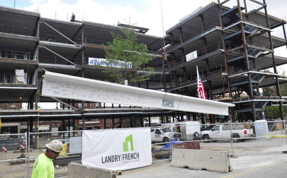 City officials and college staff members gathered to celebrate a milestone in the revitalization of downtown Waterville.