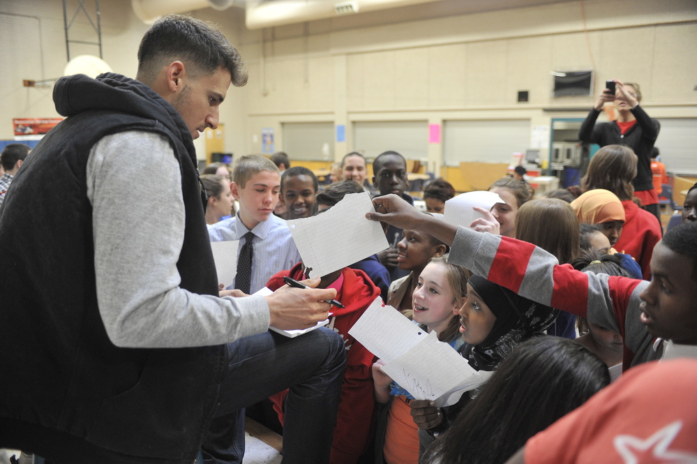 Ryan Flaherty fields some curveballs from Portland eighth-graders