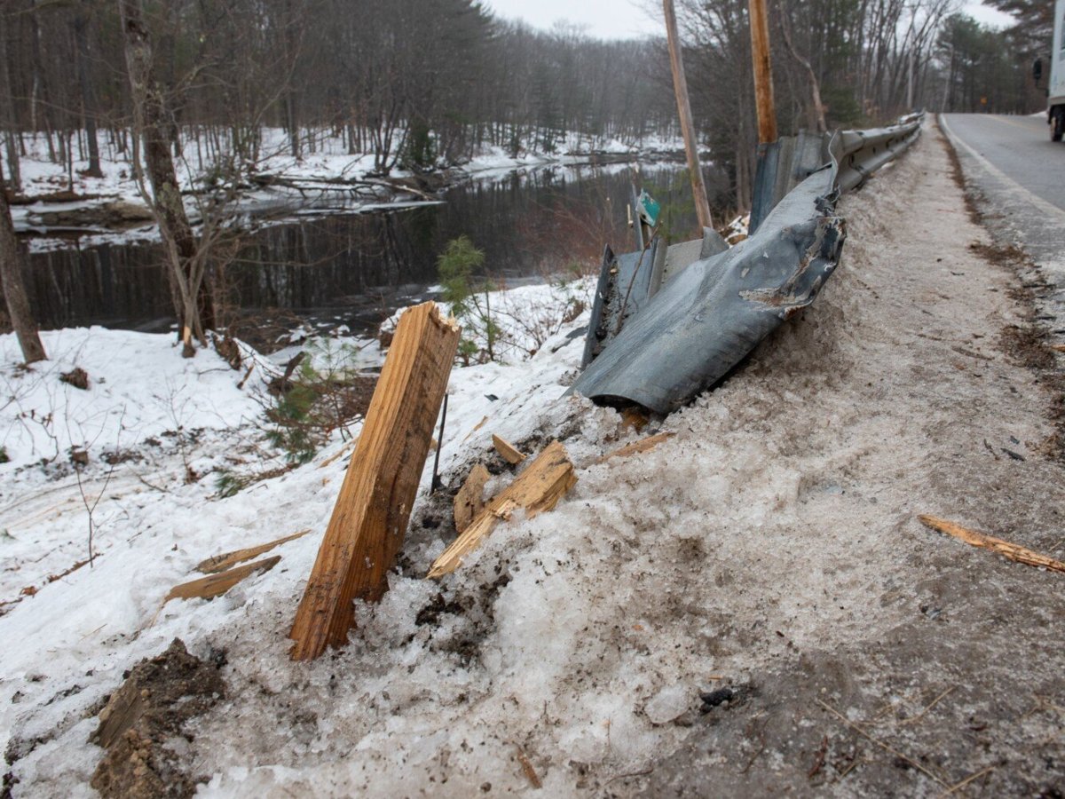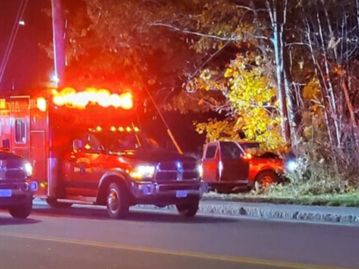 A pickup truck driven by Adam Doherty, 37, of Rockland hit trees beside Minot Avenue.