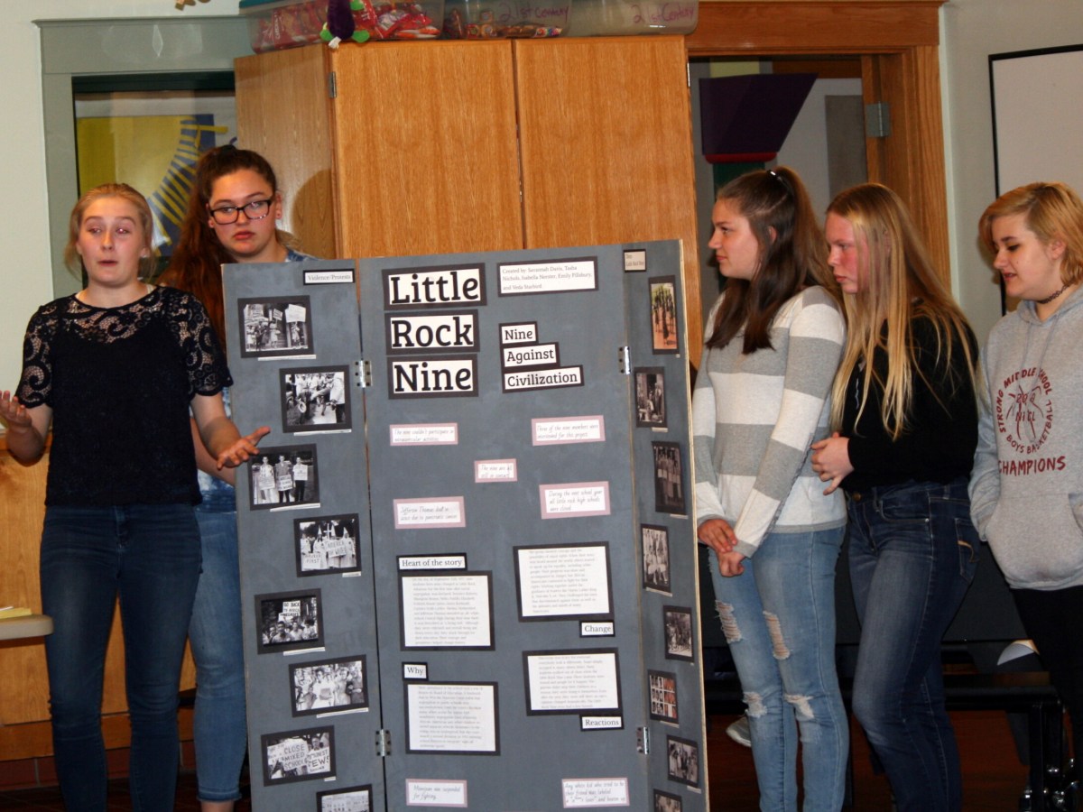 The eighth-grade team project on the Little Rock Nine focused on 1957 school segregation case.