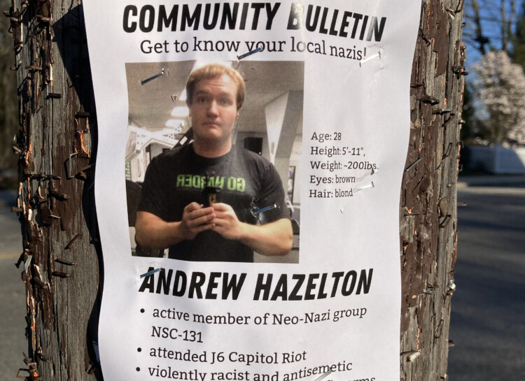 Andrew Hazelton, who is charged with possessing child pornography, was a member of a small but vocal white supremacist propaganda group that recently established a presence in Maine.