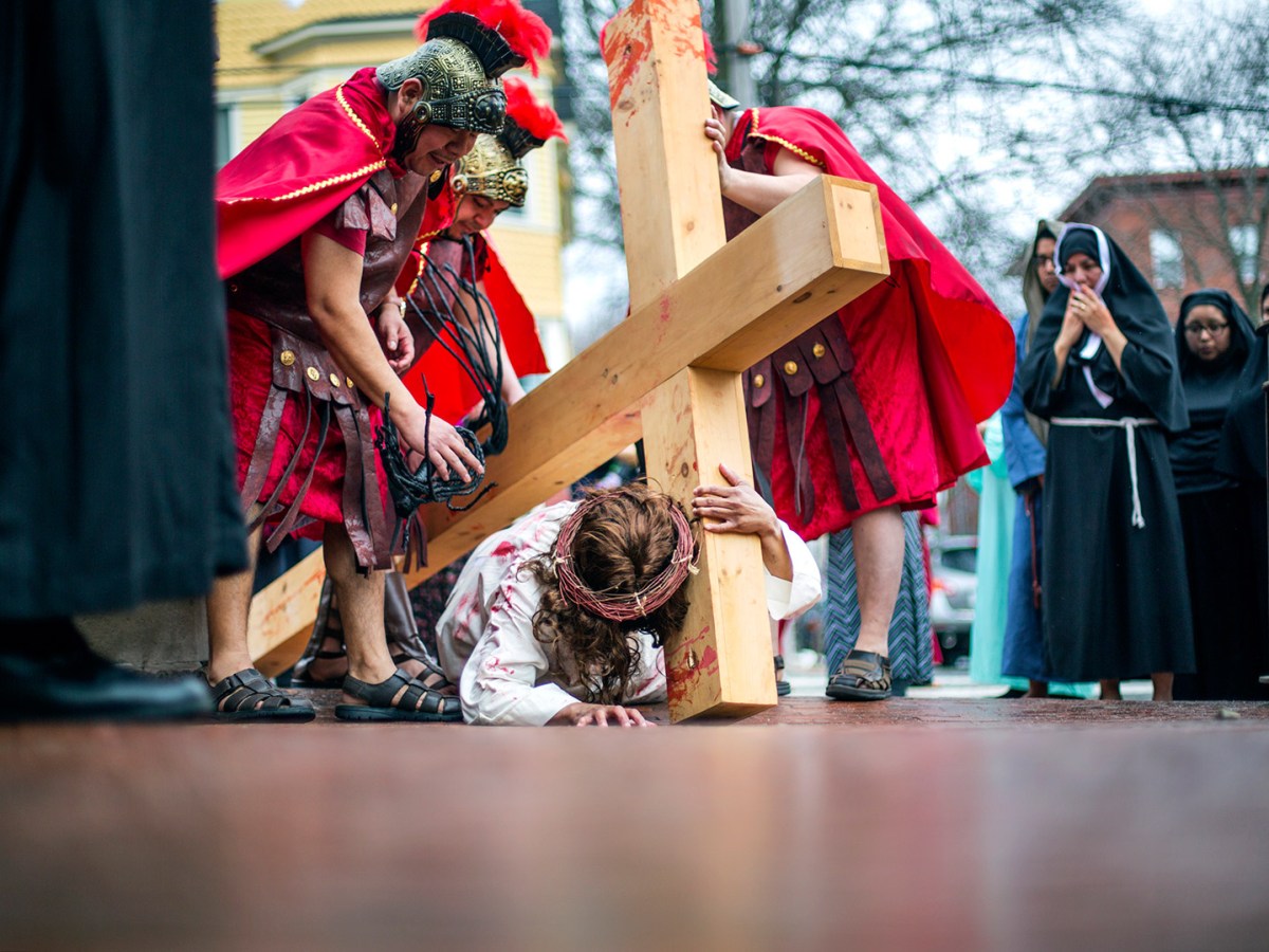 For Good Friday, the faithful at Portland church re-enact the Stations of the Cross