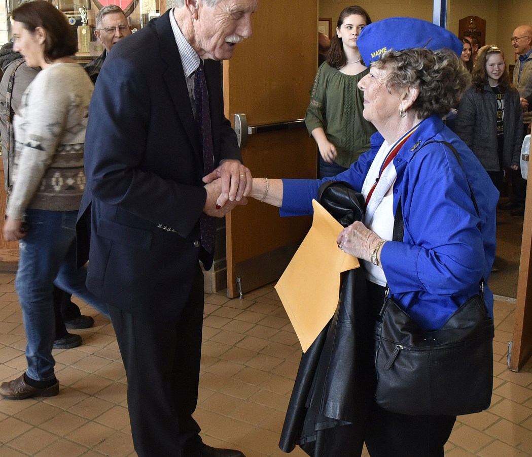 At an assembly Thursday, U.S. Sen. Angus King encouraged middle school students to support and thank veterans for their service to the country.