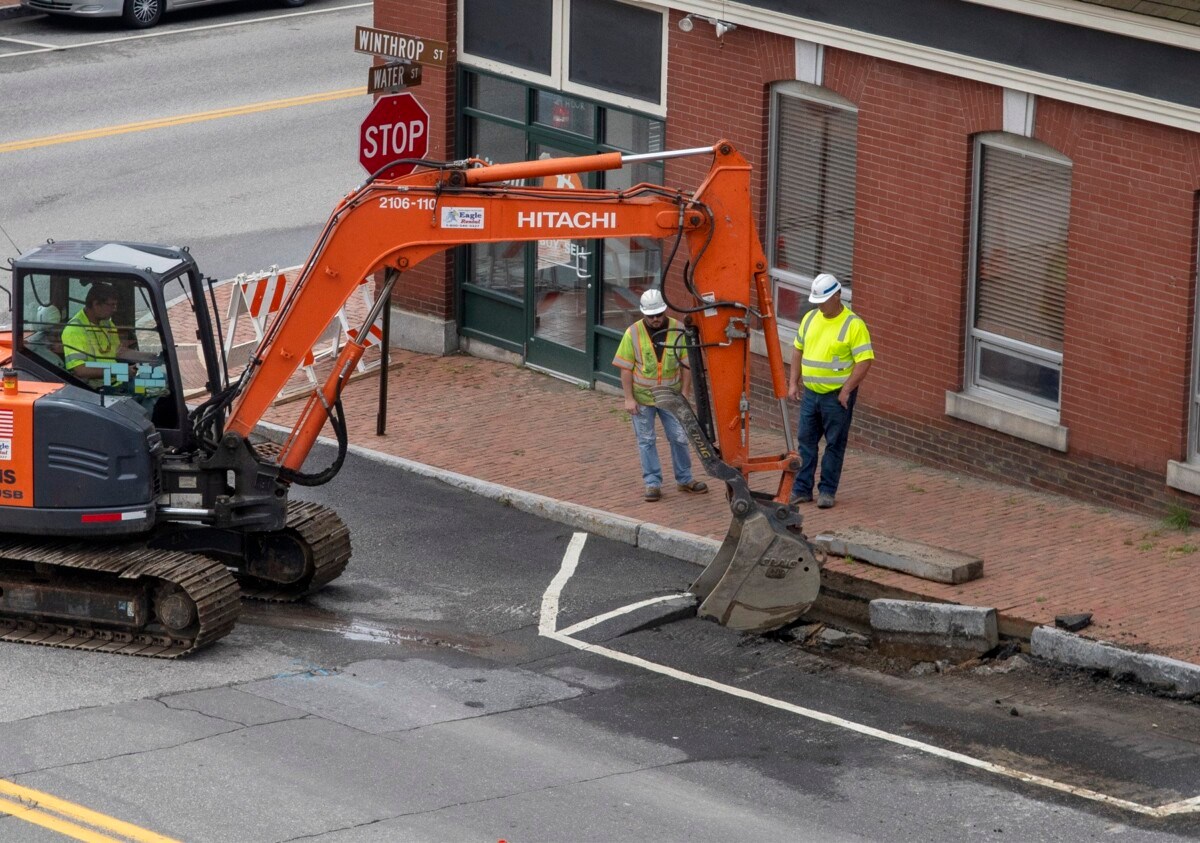 Heavy rain damages downtown Hallowell road