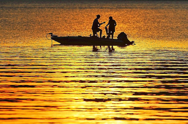 Fisherman cast their lines on to a sun drenched Great Pond in Belgrade on Sunday. The pond was made famous by Ernest Thompson’s screenplay, “On Golden Pond.”
