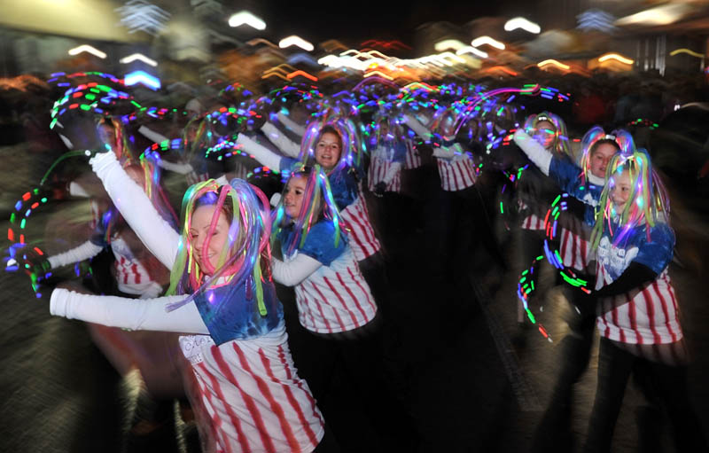 Young Americans Dance center members dance their way down Main Street in Waterville on Friday night during the annual Parade of Lights.