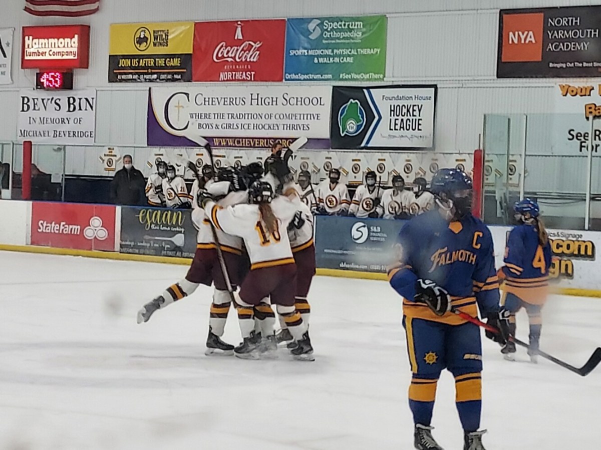 The Cape Elizabeth/South Portland/Waynflete girls’ hockey team edged Falmouth, 5-4, in a dramatic regional semifinal.