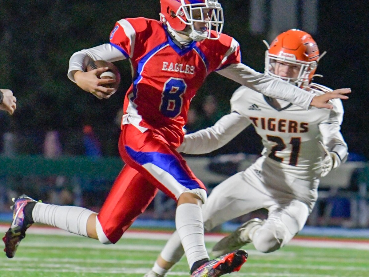 Mistakes mount for reigning Class B state champs as Eagles claim 35-0 win.