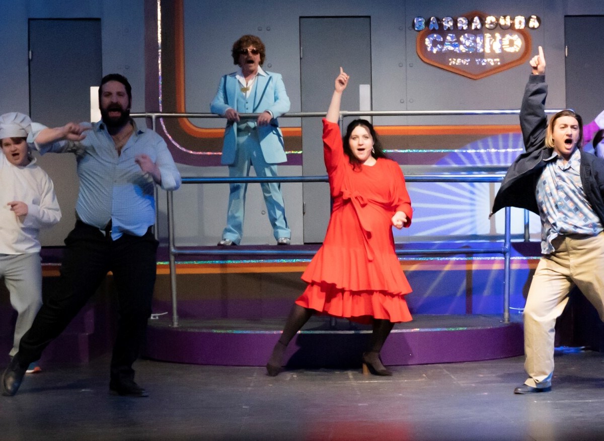 Madcap musical comedy delivers ’70s songs and frantic fun as floating casino faces catastrophe at Community Little Theatre in Auburn.