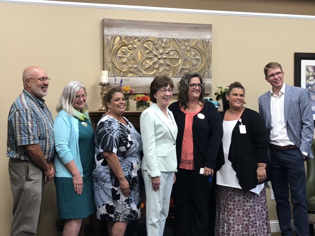 U.S. Senator Susan Collins visited Woodlands Senior Living of Farmington last Friday to tour the location’s communities and meet with residents, staff, and management. The facility provides assisted living and independent living private apartments for seniors as well as Franklin County’s first specialized memory care unit.