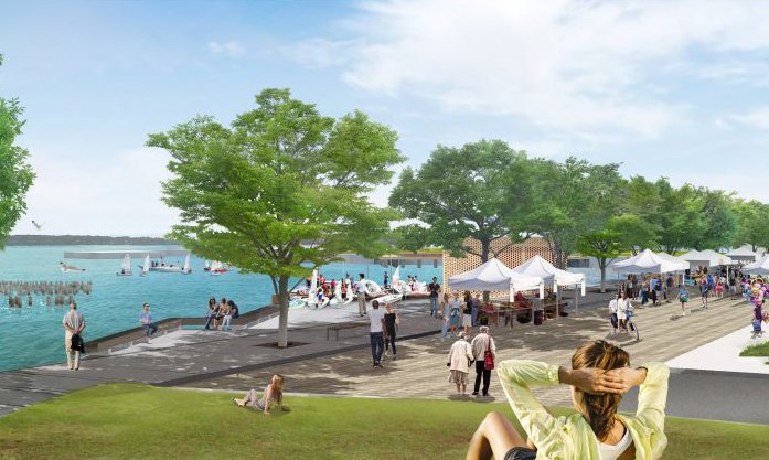 ‘Portland Landing’ would include event space, sailing facilities and elevated berms to protect against sea surge.