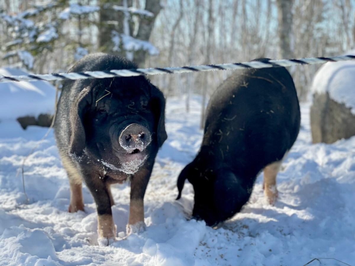 The farmers at Roaring Lion Farm are raising Meishan heritage pigs.
