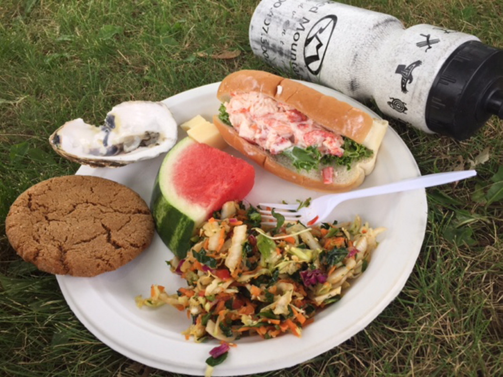 The food director for the Bicycle Coalition of Maine chops all that slaw by hand.
