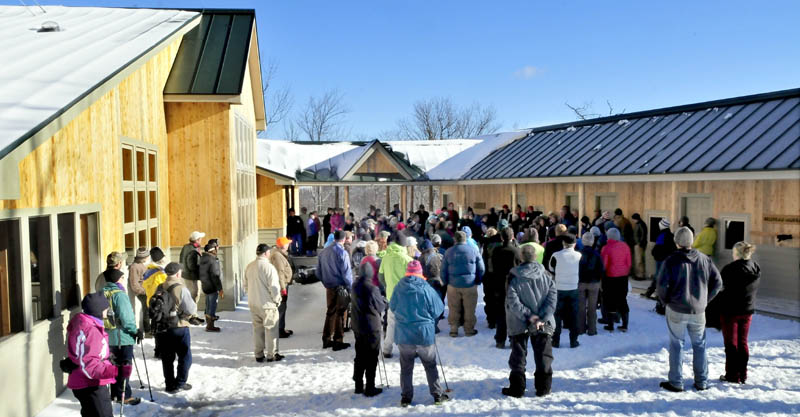 CARRABASSETT VALLEY — On a clear December day, hikers and skiers dot the snow-covered trail leading them through an evergreen forest below the Bigelow Mountains.