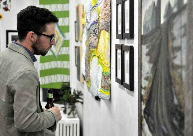 WATERVILLE — Jamie Ribisi-Braley munched on a pumpkin and beet curry with pumpkin cornbread triangles, as she mingled at the opening of a new art exhibit in downtown Waterville Saturday night.