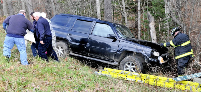 WINSLOW — A Winslow woman was taken to Inland Hospital on Sunday afternoon, after her car went off the road and into a tree on Garland Road in Winslow.