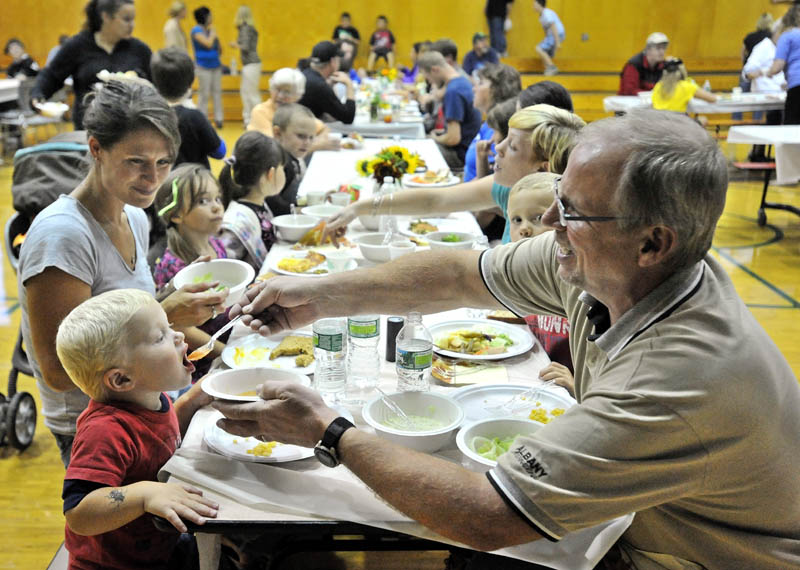 ANSON — Parents and children sat down to a harvest dinner on a recent night to enjoy food prepared from the first crop of a new garden cultivated by third-graders.