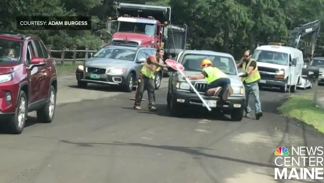 Construction flagger hit by truck in Kennebunk; driver charged