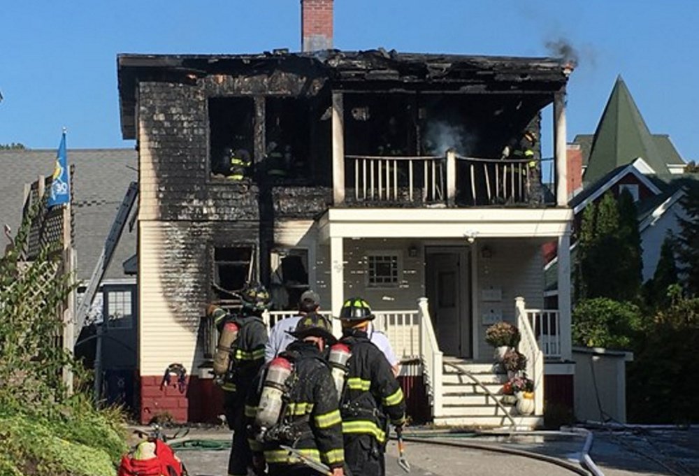 A firefighter suffers the only reported injury in the Saturday morning blaze on Lincoln Street in Portland.