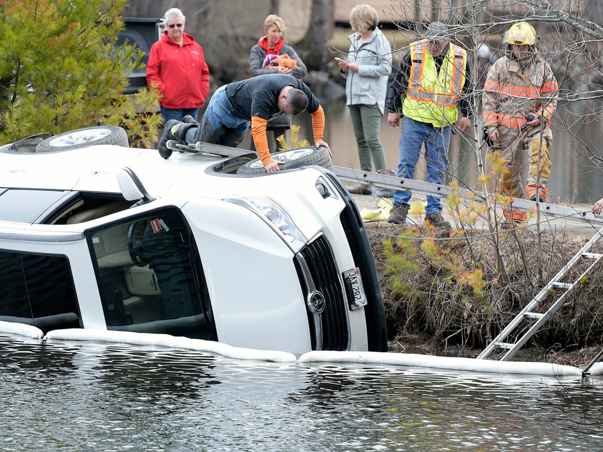 Litchfield woman uninjured after car overturns into Woodbury Pond