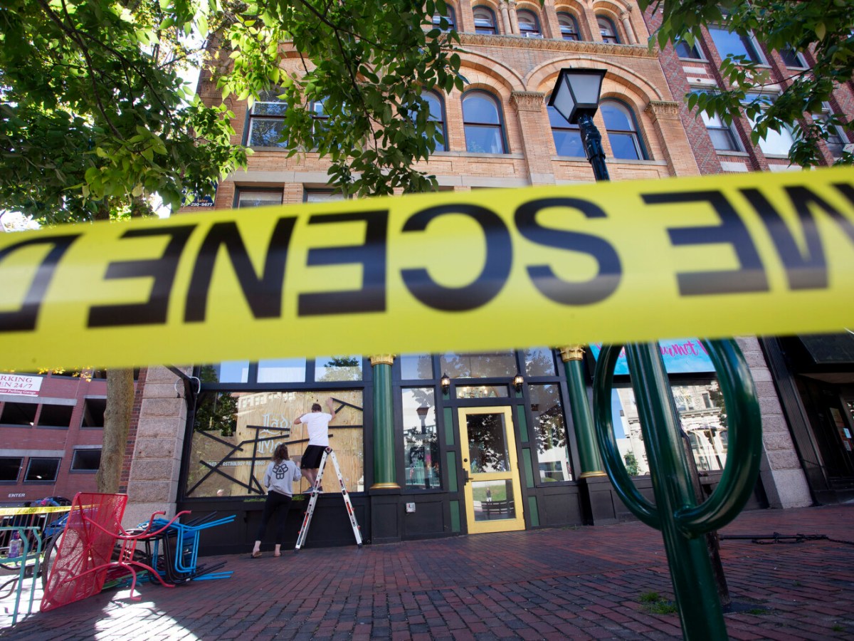 The suspect broke windows and other items to get into David’s Restaurant and The Lady in the Moon, a boutique store, according to Portland police.