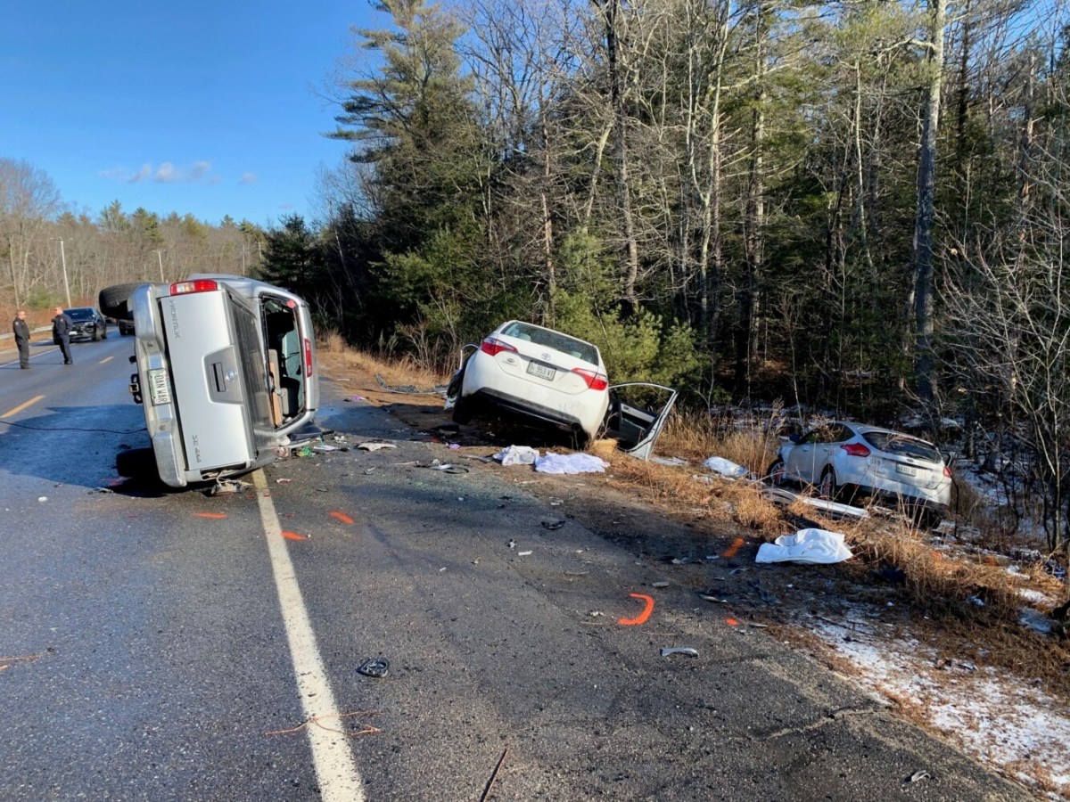 The three-vehicle crash took place Saturday morning on Route 35 near the Windham town line.