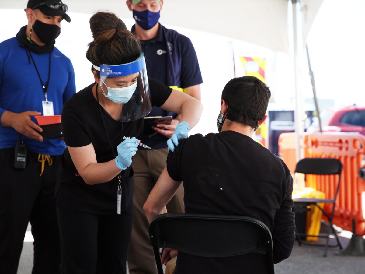 A handful of people got their shots at a community-led pop-up clinic Sunday in Kennedy Park.