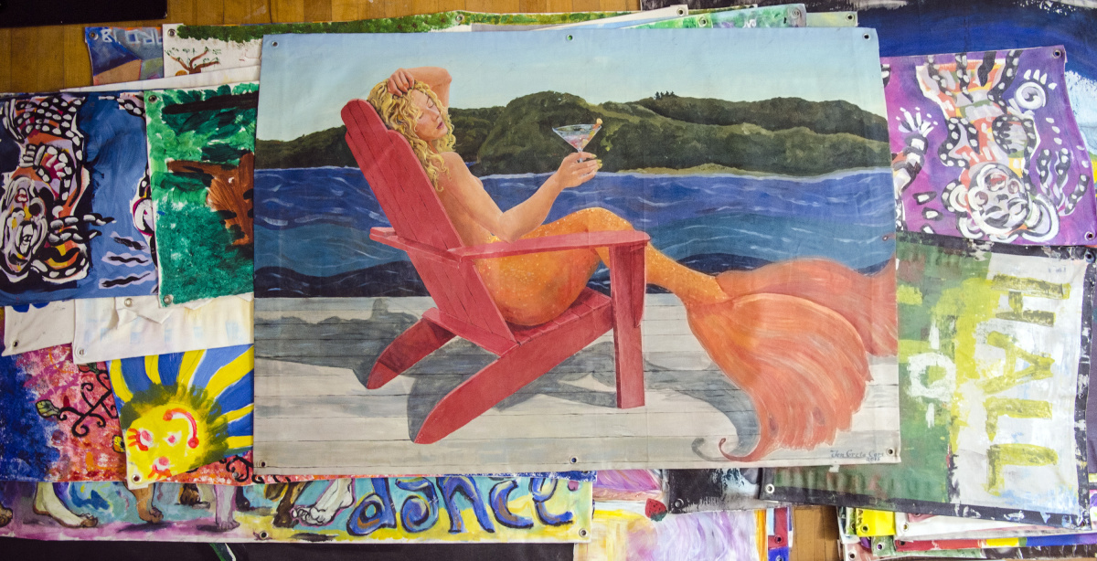 Murals that decorated Hallowell’s Water Street during construction are for sale