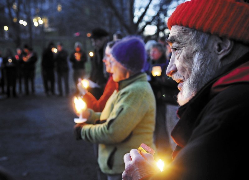 AUGUSTA — People of many faiths marched to Capitol Park Sunday to show support for the Occupy Augusta encampment on the eve of a court hearing to determine whether the group can continue to live in the park.