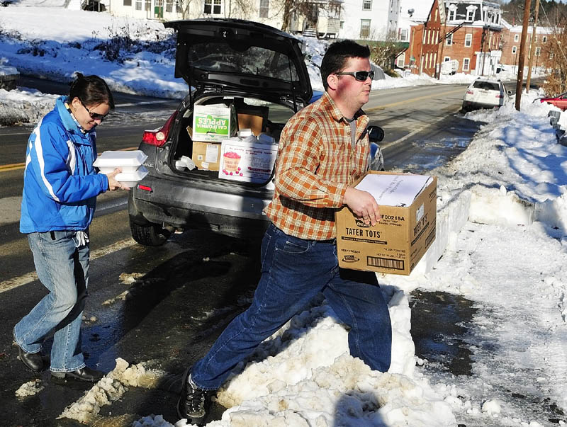 GARDINER — Josh and Erica Atkinson loaded 66 Thanksgiving meals with all the trimmings into their small sport utility vehicle Thursday, bound for Richmond.