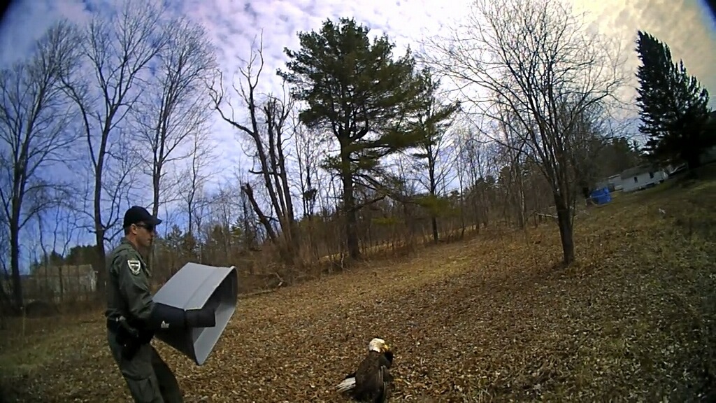 No officers were injured while rescuing an injured bald eagle on Dartmouth Street on Friday afternoon.
