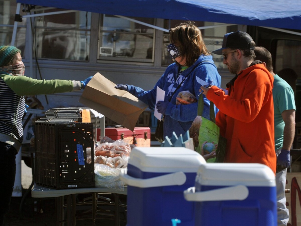 Saturday’s farmers market brought out a record number of locals at 42 Court St., where safe social distancing was practiced between shoppers and vendors.