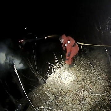The woman, who was found sitting on the roof of her SUV, was escorted to land by Skowhegan firefighters and taken to the hospital for evaluation.