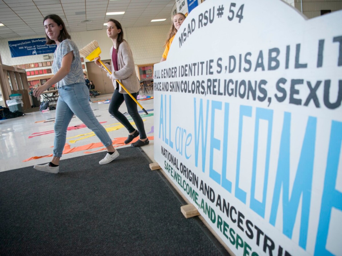 Members of the civil rights club; Gay, Straight, Transgender Alliance; art club and volunteers planted flags, window markers and banners throughout the school to spark conversations about biases.