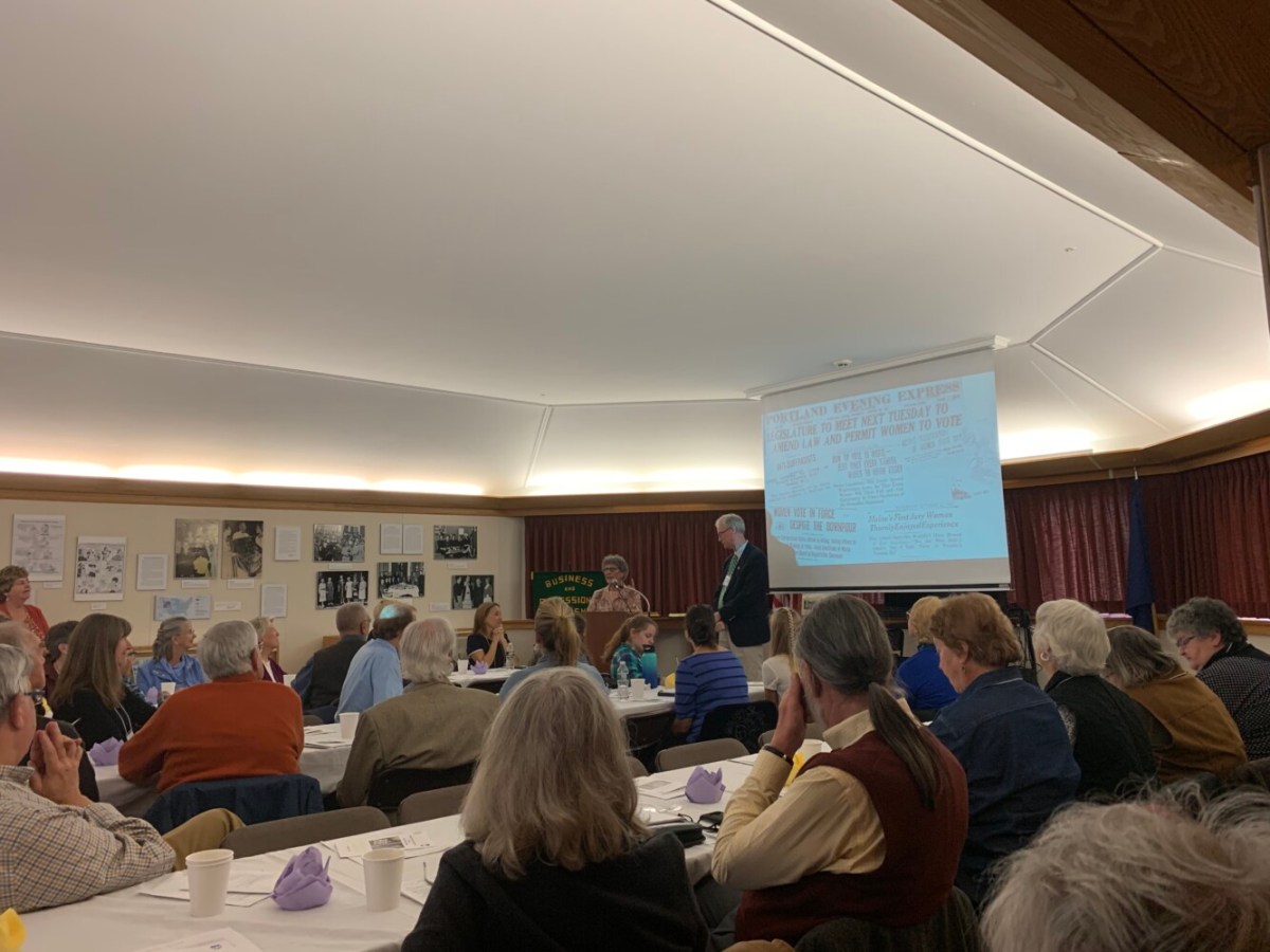 During the annual meeting, a former state representative and the executive director of the League of Women Voters addressed their experiences running for office.