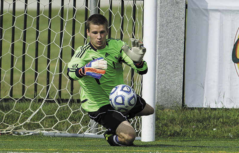 Last season, Husson University listed Brian Potter as a goalie/forward on its men’s soccer roster. This season, Potter’s focus is on nothing but the net for the Eagles.