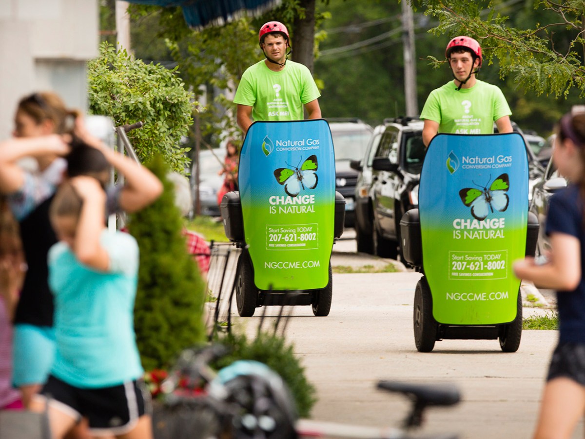 Ad campaigns and sales people on Segways woo homeowners and small businesses in three suburban towns with new natural gas lines.