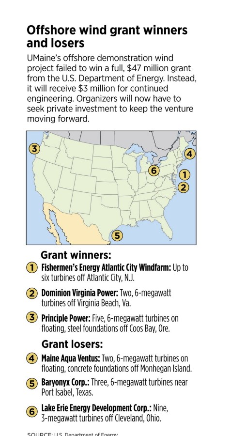 Missing out on a $47 million federal grant means the deep-water pilot project may not have the money to move toward a commercial scale.