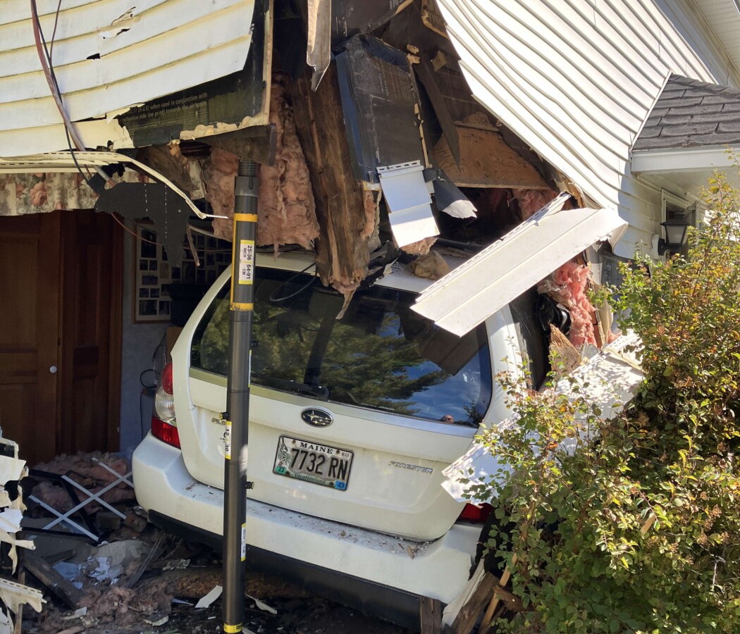 The SUV driven by William Haiss of China came to rest Monday inside a first-floor room and Winslow police Chief Leonard Macdaid said Haiss suffered only minor injuries and that no one was in the home at the time.