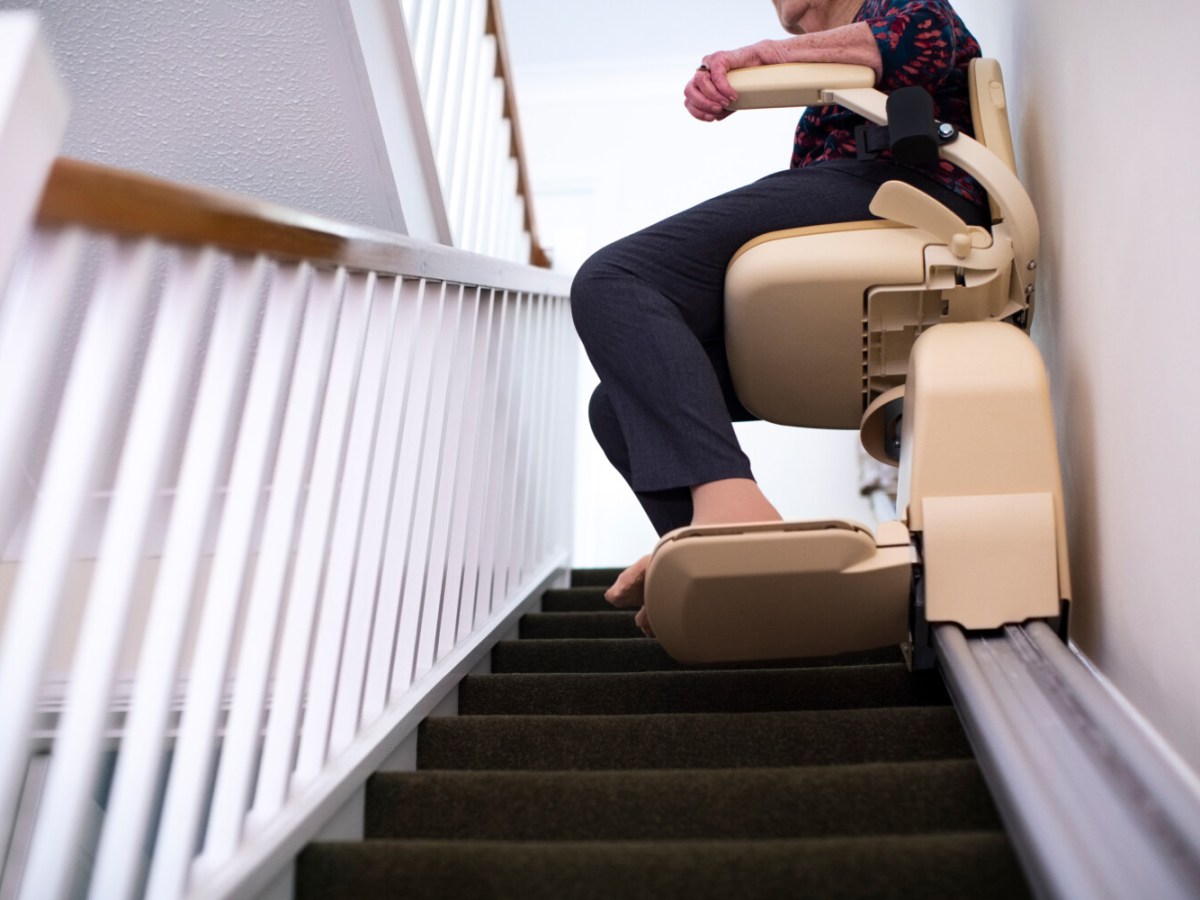 The sleek, gray, maybe mauve stairlift chair has arrived in the Devine household, signaling a journey into the capricious and unknown future.