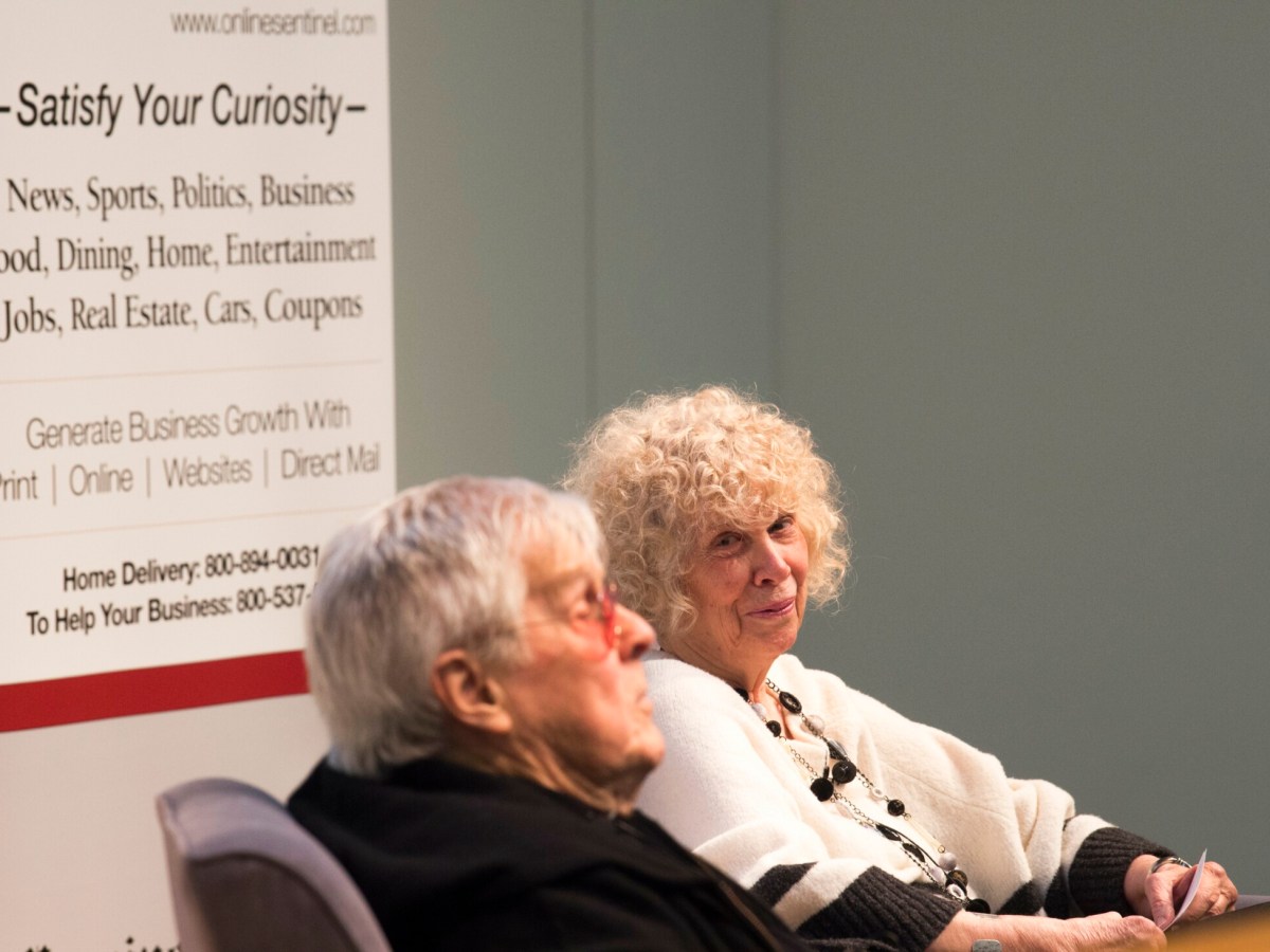 J.P. Devine and Kay Joly Devine spoke before a crowd of 175 Tuesday at the Waterville college.