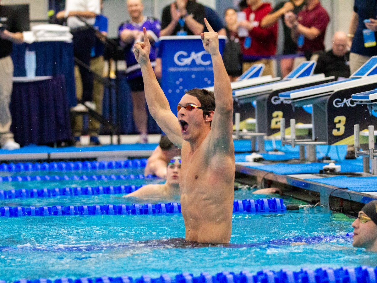 Bobcats junior Max Cory and Polar Bears freshman Natalie Garre win titles and swim all-time best times at NCAA Division III championships.