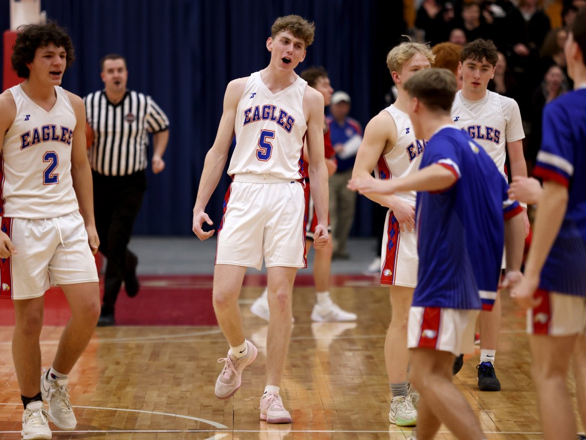The top-seeded Eagles withstand a huge fourth quarter by Nolan Ames, moving on to the Class A North final.