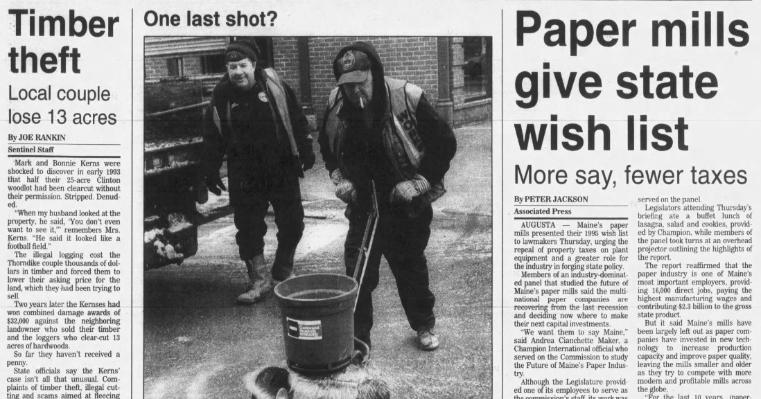 March 10, 1995: Thorndike couple’s 25-acre lot in Clinton was clearcut without their permission, state paper mills want fewer taxes in 1995, and these Skowhegan woman will bike across US