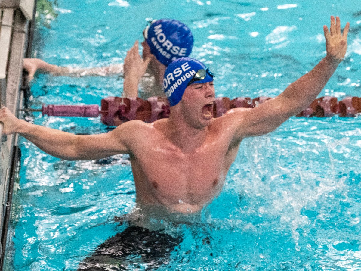 Records fall as Morse, Edward Little co-op win KVAC boys swimming titles