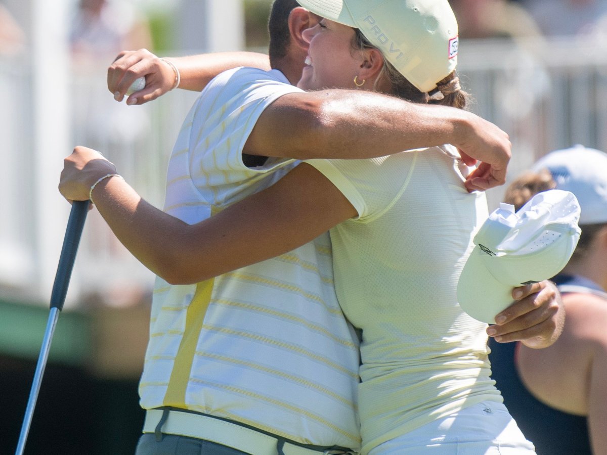 The 18-year-old golfer carded seven birdies and shot 3-under 69 to rally from four shots down and defend her title.