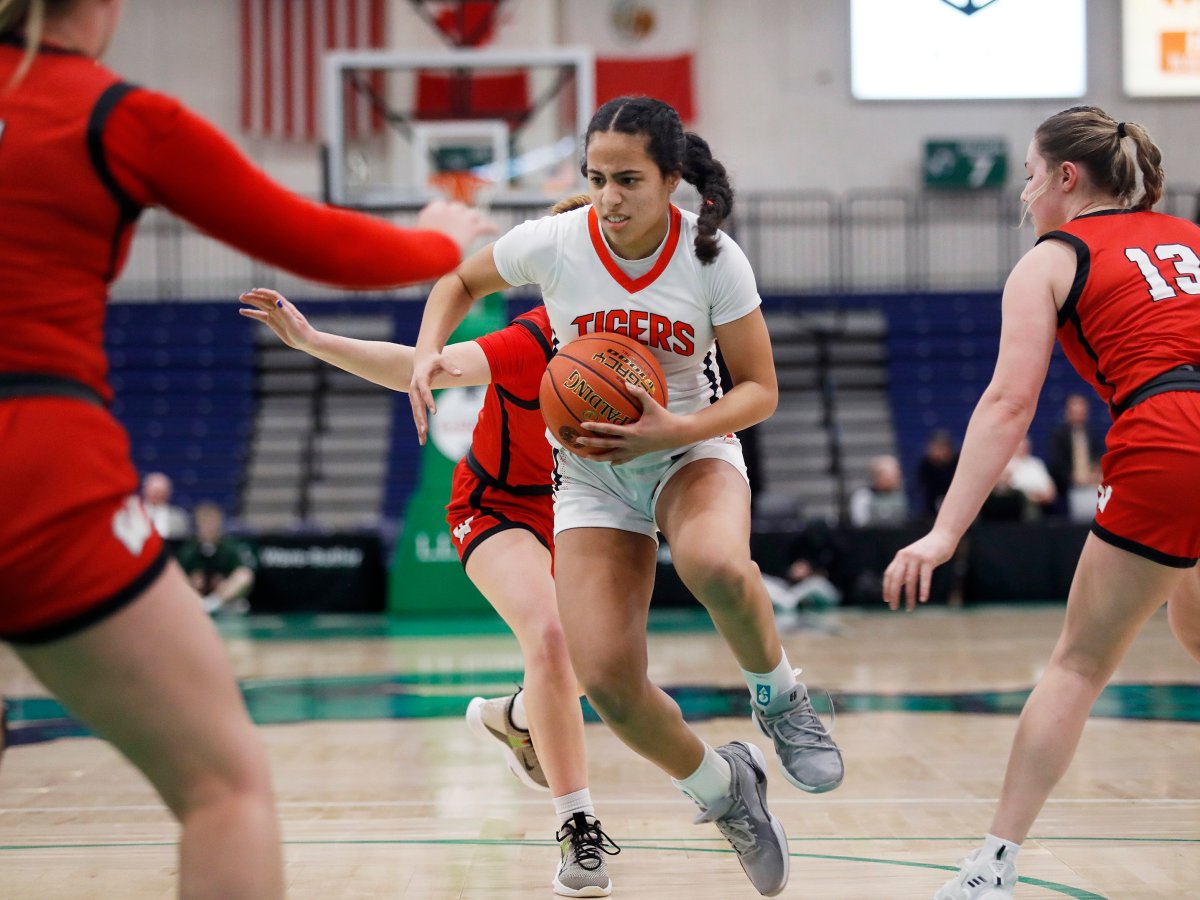 Class B South semifinals play out in the Maine high school basketball tournament at the Portland Expo.