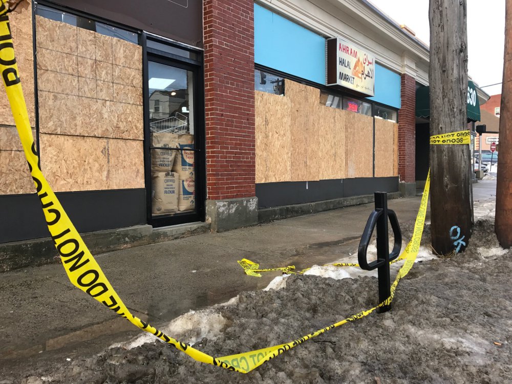 Advocates for Muslim-Americans condemn the vandalism at the Ahram Halal Market on Forest Avenue.