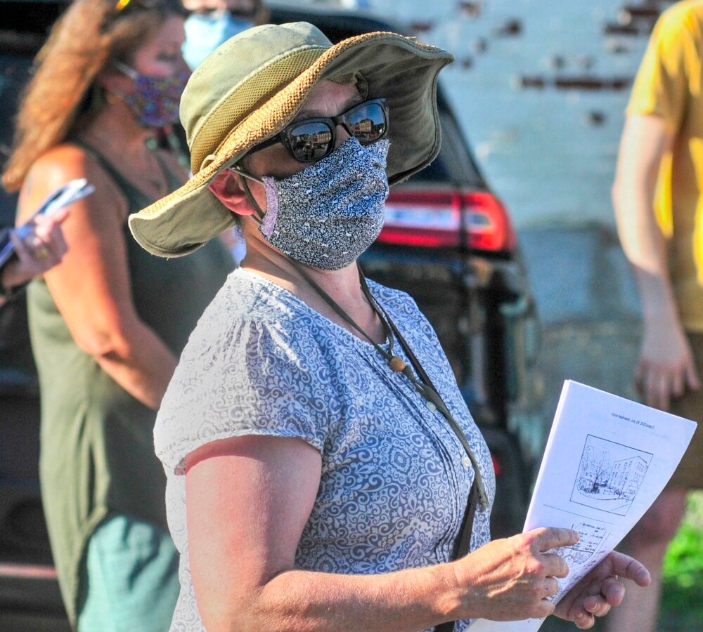 About 20 people meet at a lot on the corner of Water and Central streets to discuss the location of a temporary park.