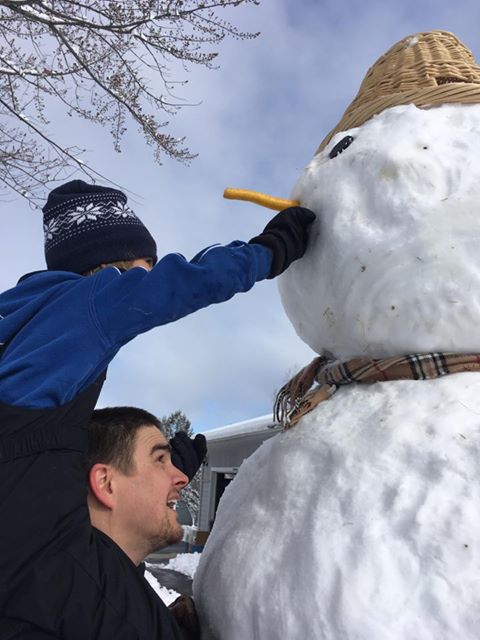 What to do with all this snow and the kids at home? The Fikus family of Gardiner gets busy outside building a snowman.
